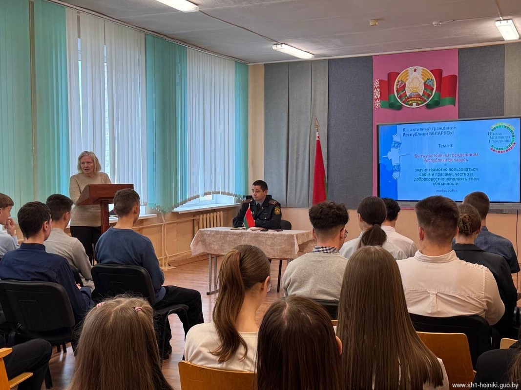 В ГУО «Средняя школа 1 г. Хойники» прошло мероприятие в рамках информационно-образовательного проекта «ШАГ» на тему «Быть достойным гражданином Республики Беларусь – значит грамотно пользоваться своими правами, честно и добросовестно исполнять свои обязанности».