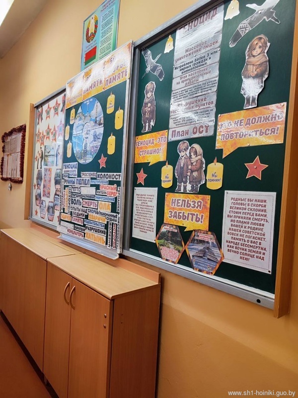 В целях сохранения исторической памяти, повышения патриотического сознания у учащихся в ГУО «Средняя школа 1 г. Хойники»прошли информационные часы на тему "Геноцид белорусского народа в годы Великой Отечественной войны".