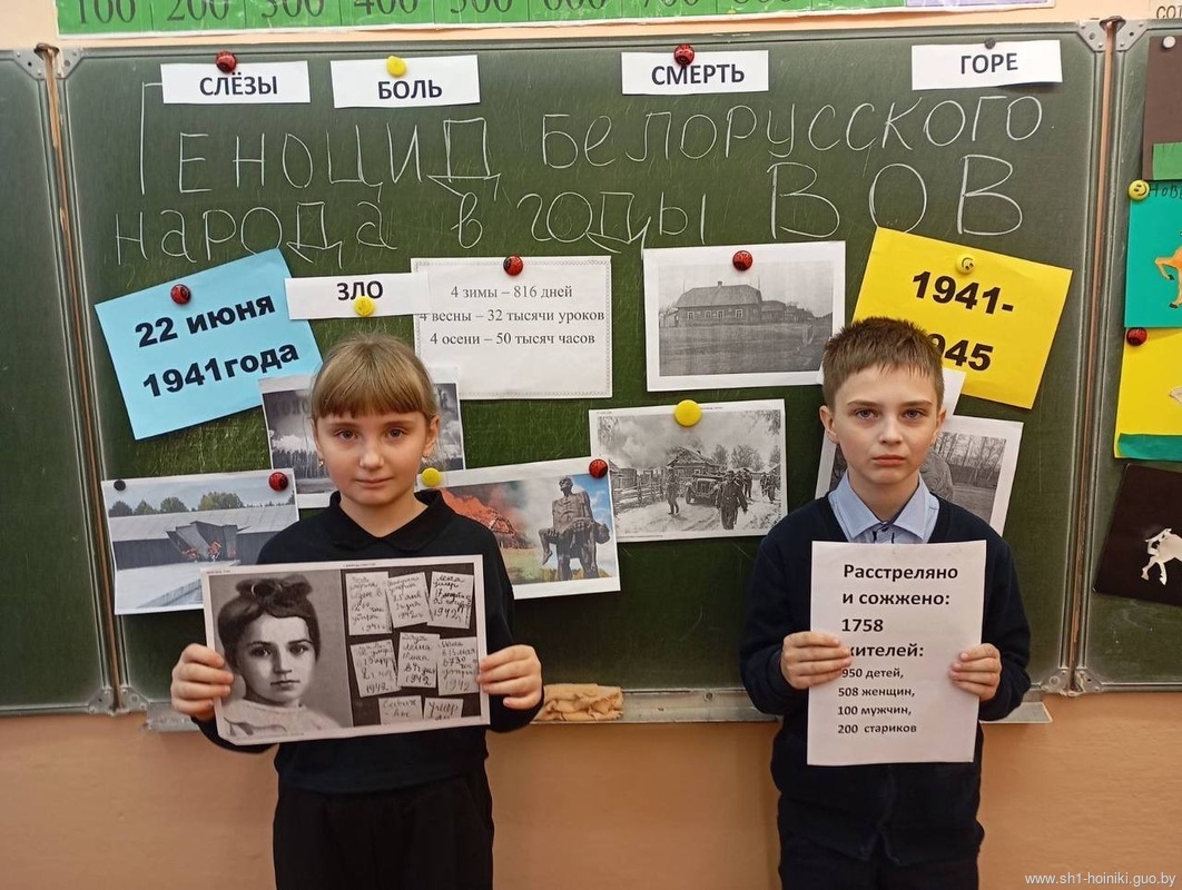 В ходе мероприятий ребятам напомнили о смысле понятия «геноцид», рассказали о расследовании Генеральной прокуратурой уголовного дела по факту геноцида белорусского народа, об испытаниях, выпавших на его долю в годы Великой Отечественной войны, трагедии сожженных деревень, лагерях заключенных военнопленных и принудительном содержании населения.