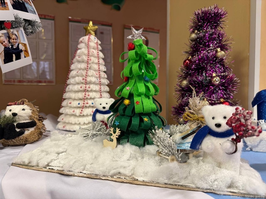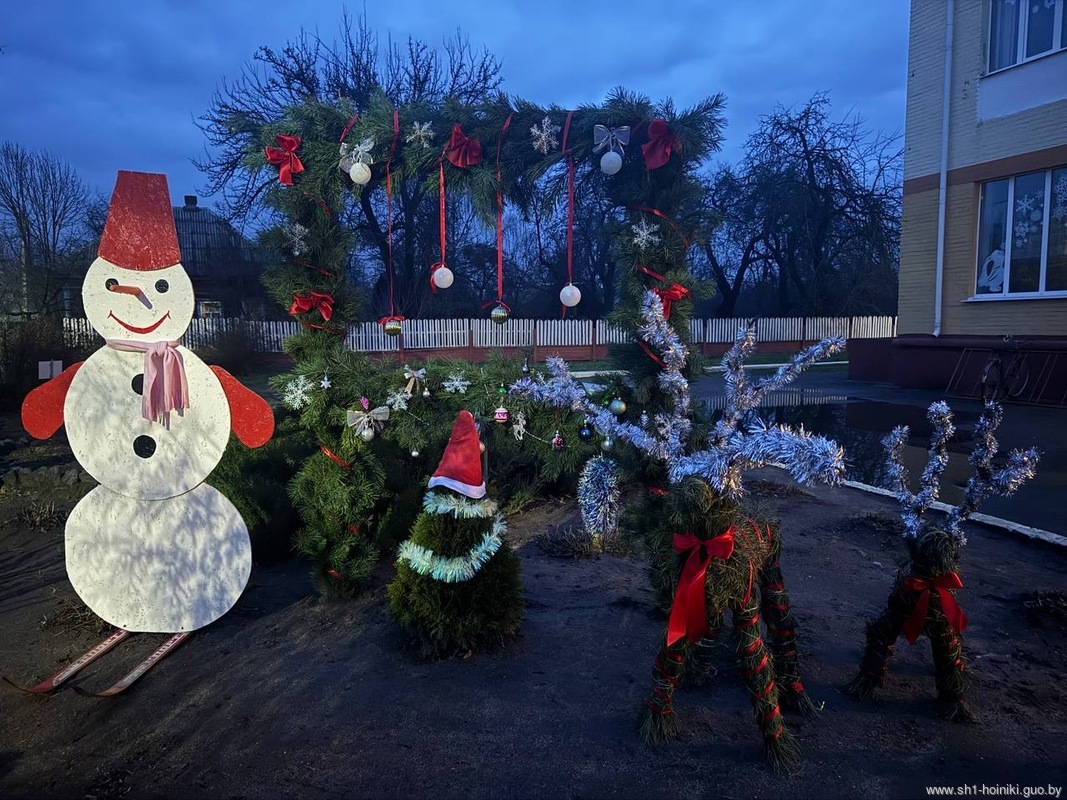 Новогоднее оформление государственного учреждения образования «Средняя школа №1 города Хойники» погружает всех гостей и учащихся в удивительную атмосферу зимних праздников. Гармонично подобранные украшения создают ощущение настоящей зимней сказки, наполняют сердца теплом и предвкушением чудес, дарят радость и хорошее настроение каждому посетителю школы.