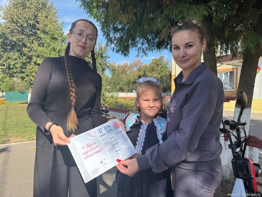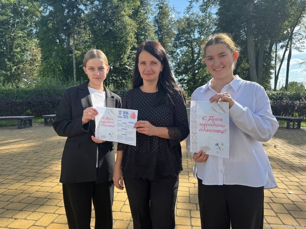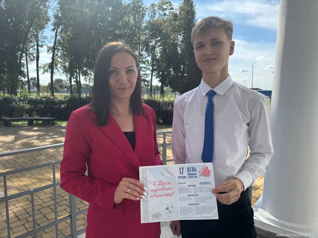 Совет старшеклассников средней школы №1 города Хойники к празднику Дня народного единства активно включился в областную акцию «Народ. Единство. Будущее», организовав распространение тематических информационных материалов среди жителей своего города