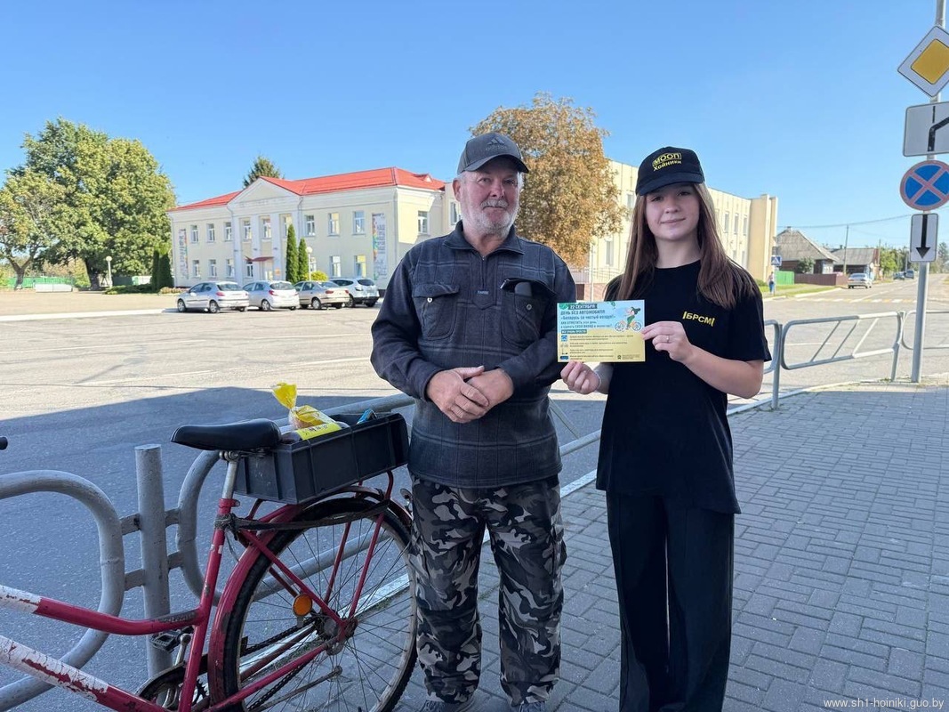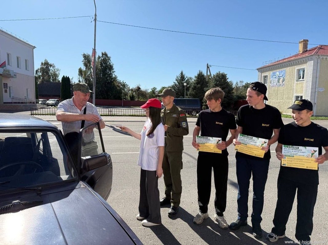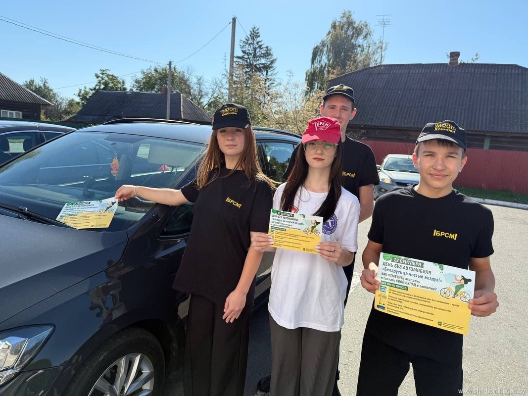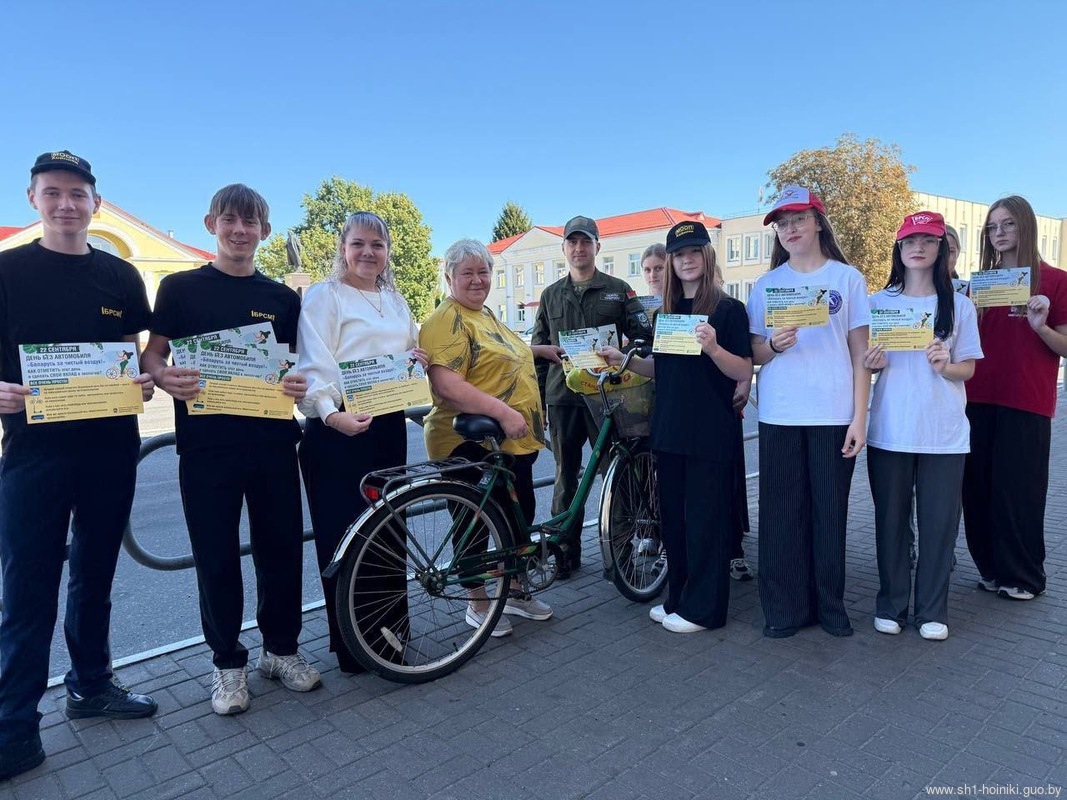 Активисты  ОО «БРСМ» ГУО «Средняя школа 1 г. Хойник» под руководством первого секретаря райкома БРСМ Ивлевой Натальи Васильевны, совместно с сотрудниками отделения ГАИ и начальником Хойникской районной инспекции природных ресурсов и охраны окружающей среды Кирпиченко Никитой Николаевичем провели акцию «Всемирный день без автомобиля»