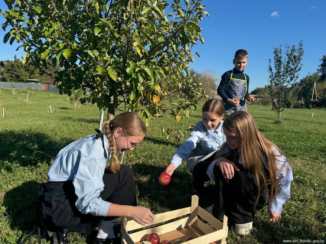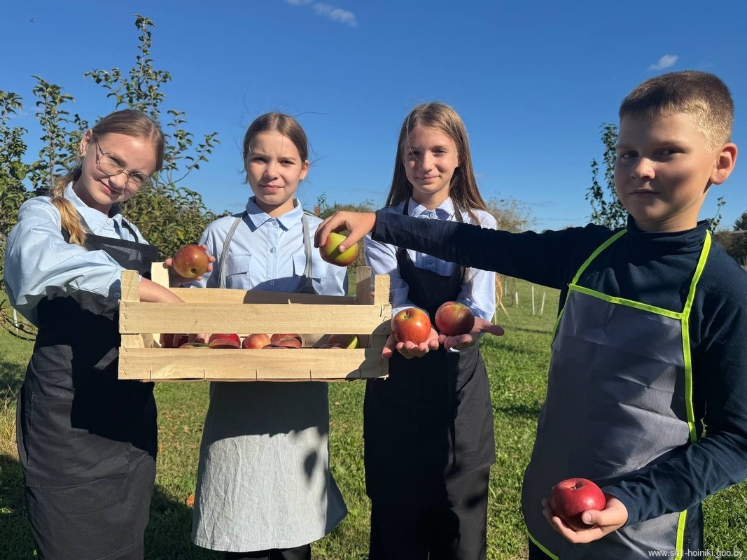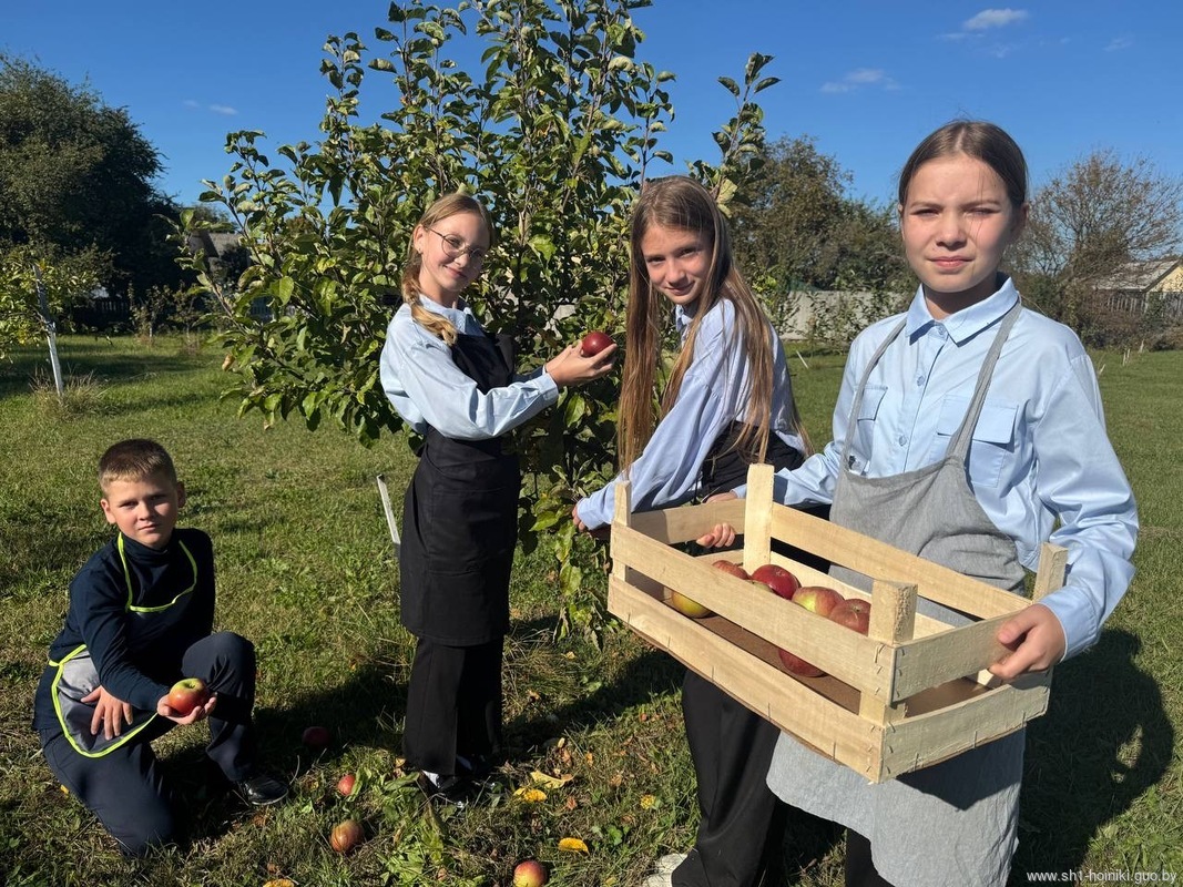 Учащиеся средней школы №1 города Хойники отправились в свой школьный сад собирать урожай яблок. Это событие стало частью традиционной акции «Сад надежды».