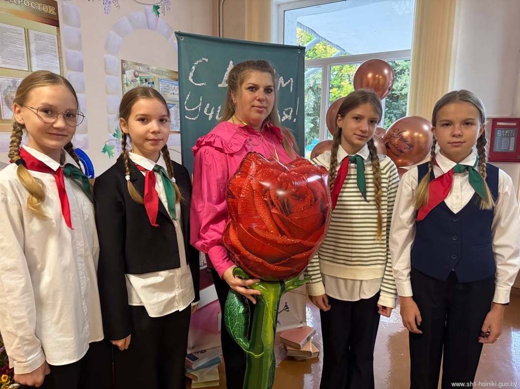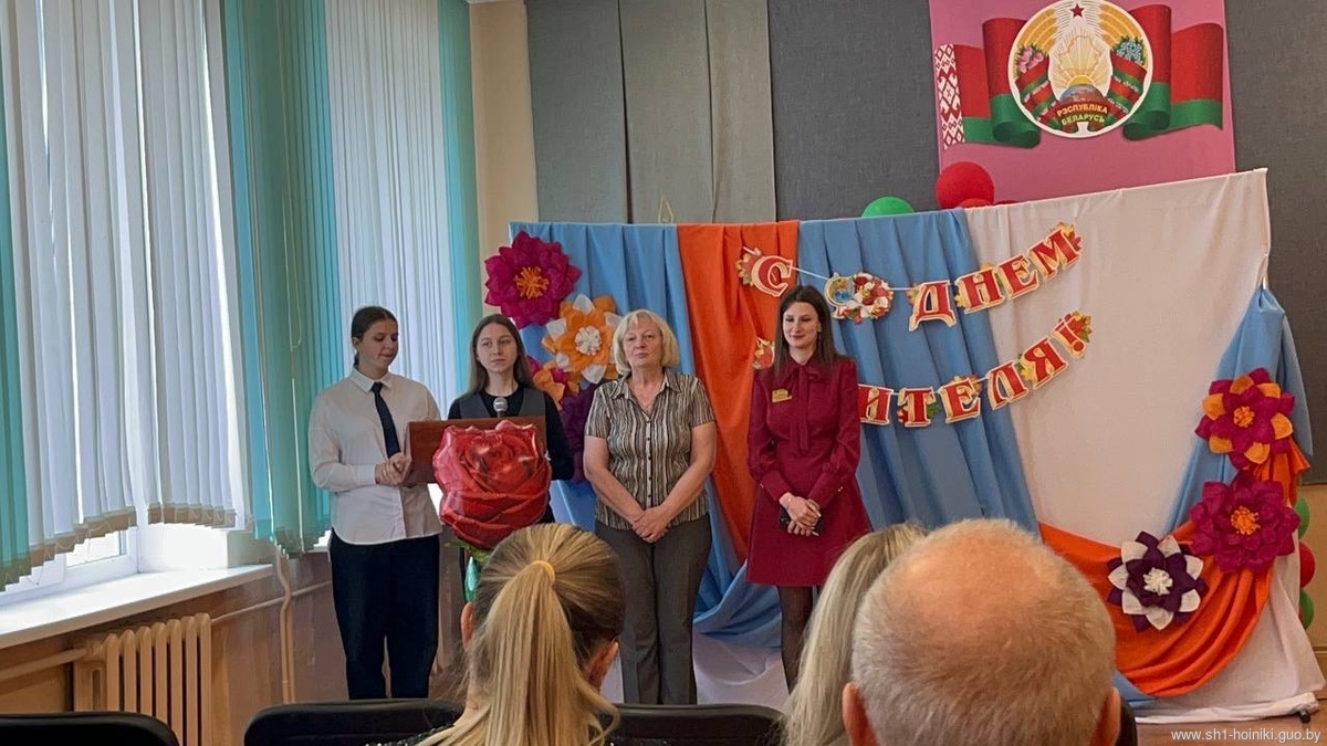 С самого утра в средней школе №1 г. Хойники царила праздничная атмосфера. Педагоги принимали поздравления с наступающим профессиональным праздником – Днём учителя!